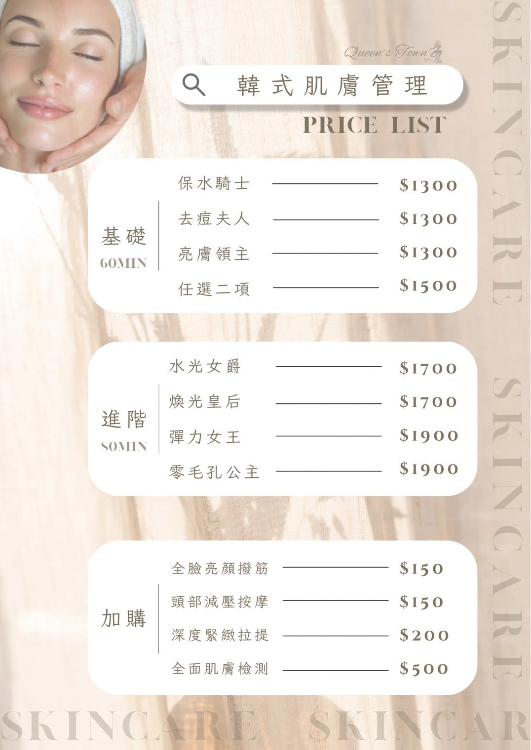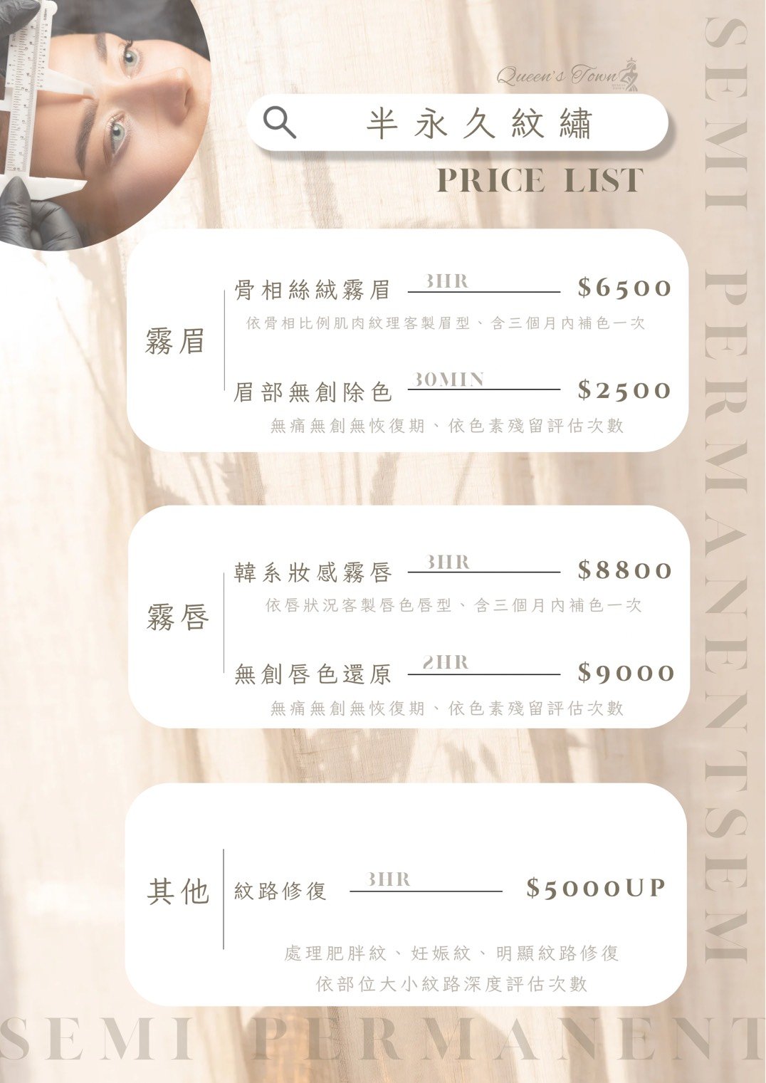 我們提供多種美學服務,包括皮膚護理、美睫嫁接半永久紋繡和除毛等,旨在滿足您對美的需求。