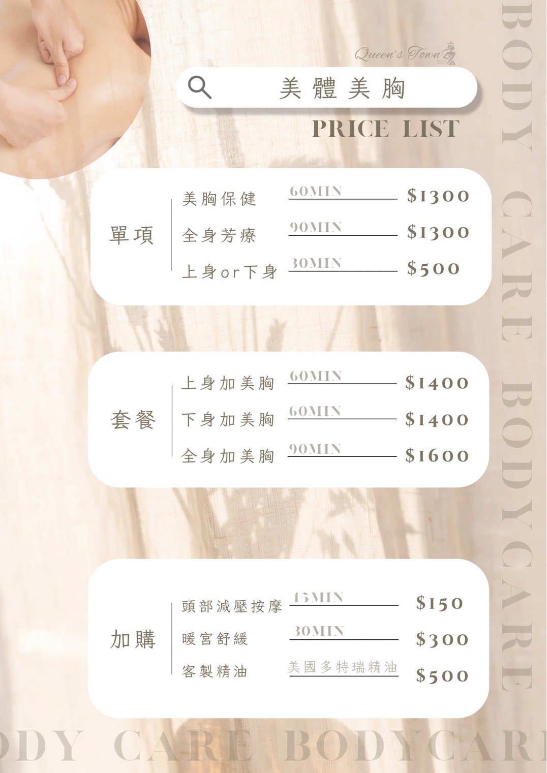我們的產品包括專業護膚品,香氛以及美體用品,提升您的保養效果。